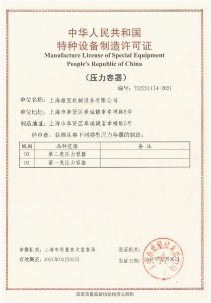 上海雄昱机械设备有限公司,是上海一家集设计、研发、生产、销售、工程安装、技术服务于一体的大型综合性生产化工机械设备的高新技术独资企业。公司成立于2010年,注册资金1500万元,占地面积12000m2,建筑面积8500㎡,总投资2000万人民币。坐落于上海奉贤区奉城镇。