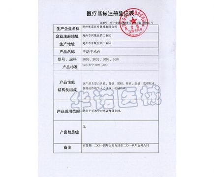 手动手术台注册证