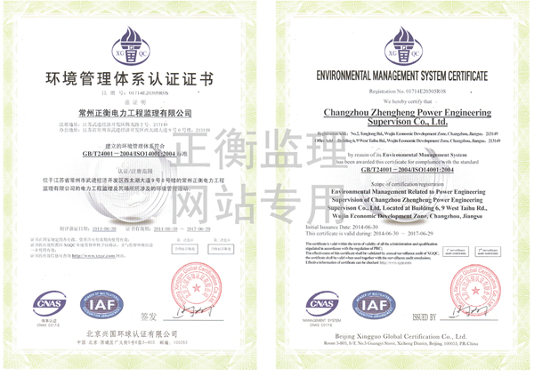 环境管理体系认证证书