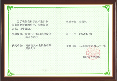 河南瑞发水电设备有限责任公司(原河南省西峡水电设备厂)是原机械部、水利部定点生产中、小型水力发电设备及兆瓦级永磁直驱风力发电机的专业厂家。公司六十年代开始生产水轮机和水轮发电机,至今已有五十多年制造历史。公司从专业的中小型水力发电设备生产厂家成长为下辖水力发电设备、风力发电设备、冶金材料、建材、水电开发、水电安装等领域的综合性企业集团。 河南瑞发公司系国内知名水轮发电机组专业生产企业、全国水电设备行业先进企业、全国优秀水利企业、河南省质量信得过企业、河南省知名商品企业、河南省高新技术企业、水利部部级先进企业、中国质量认证中心ISO9001:2000质量体系认证通过企业、中国电器工业协会水电设备分会及风力发电理事单位;公司连续10年在水电设备行业排序中,产品销售率、综合效益指数均位居全行业前十...... [ 查看详情 ]