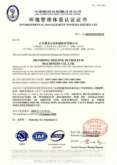 环境管理体系认证证书