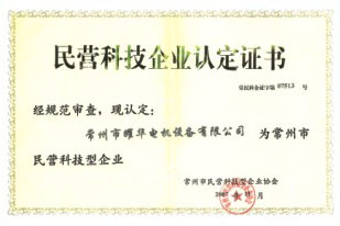 民营科技企业认定证书