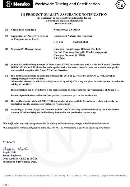 欧洲CE认证证书-CNG加气机